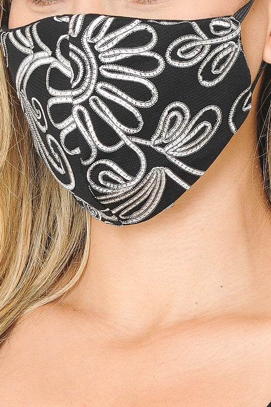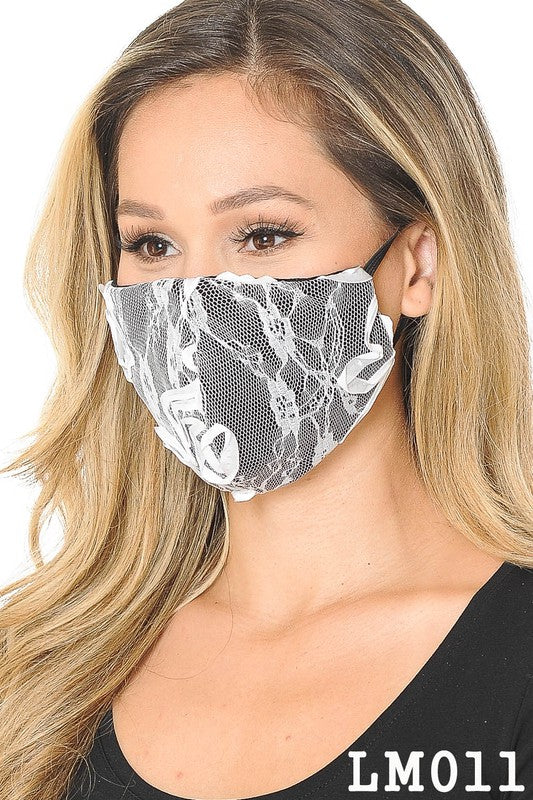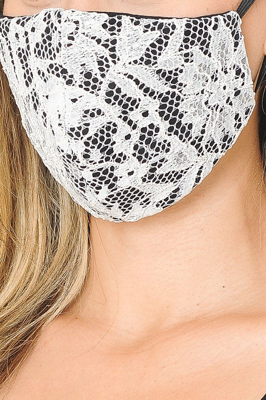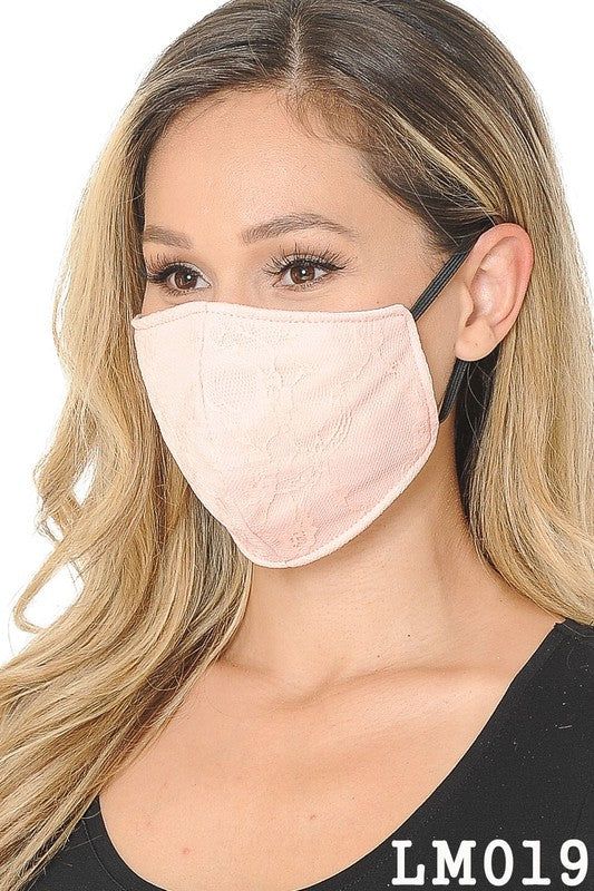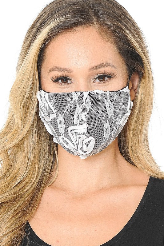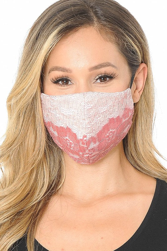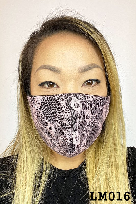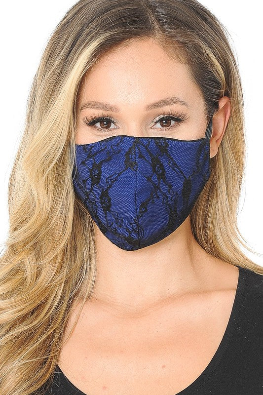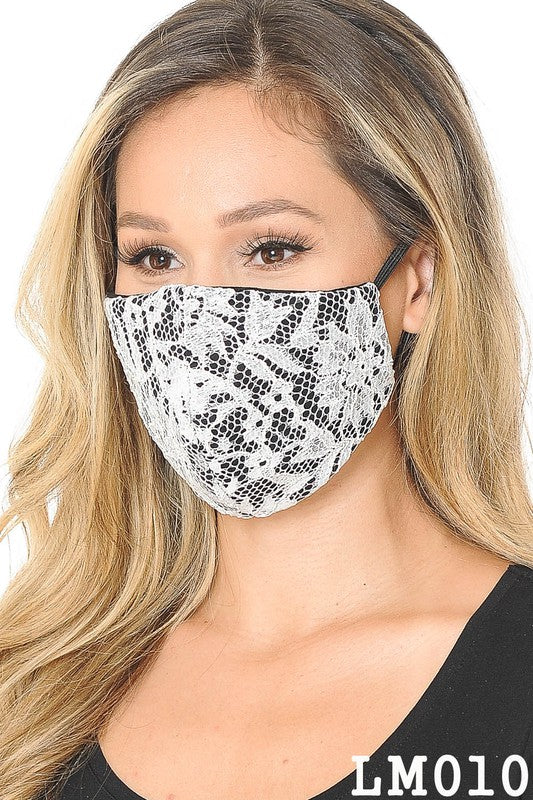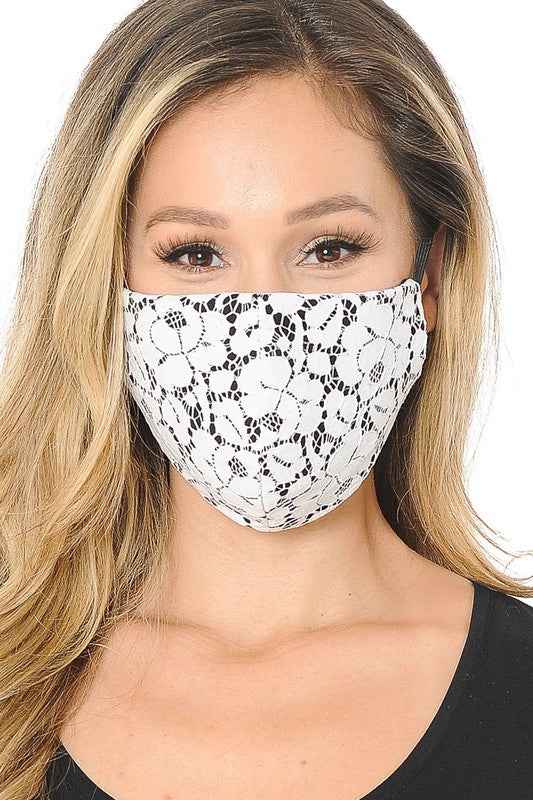Lace Contrast 4x-Layered Filter Washable Face Mask