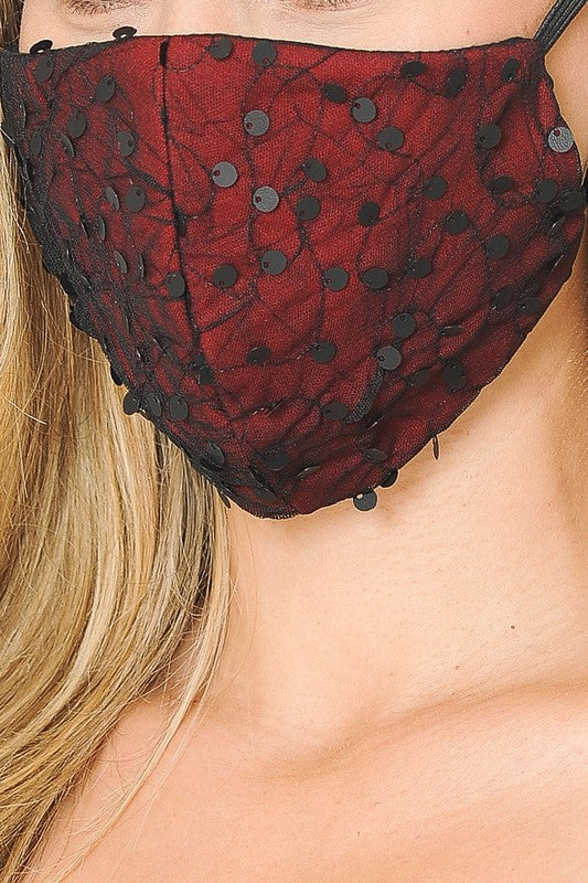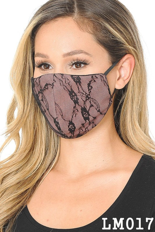 MADE IN USA/ Reusable Washable 4x-Layered Filtered Fitted Lace Contrast Face Mask No Pain Elastic Bands/One Size