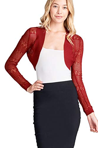 Fashion Secrets Juniors Long Sleeve Jacquard Texture Shrug Bolero, Cropped Sweater Short Cardigan