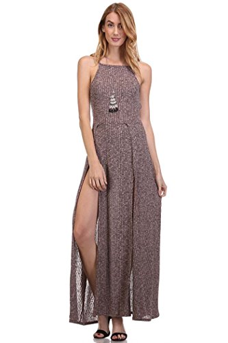 Fashion Secrets Striped Front Slit Long Spaghetti Straps Dress